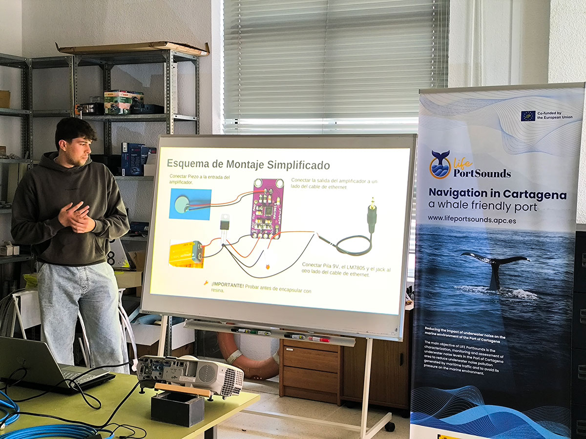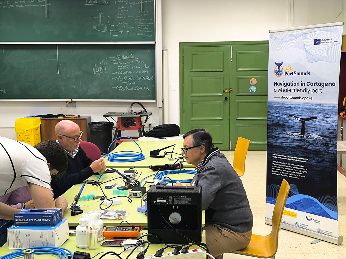 El taller fue dirigido por el profesor Francisco López, de la ETSINO (Escuela Técnica Superior de Ingeniería Naval y Oceánica de la Universidad Politécnica de Cartagena), con la colaboración de Adrián Vidal, Pablo Antonio Celdrán y Arturo Morte, de UPCT Makers, quienes aportaron su experiencia técnica y supervisaron la construcción y prueba de los hidrófonos.